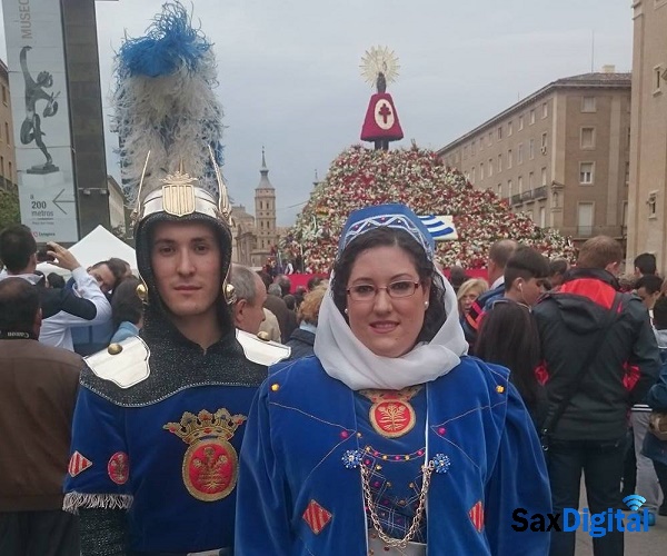 “Hemos salido con la Peña Sajeño-Alagonesa de Alagón, agradecer al presidente de la peña Ángel Lorente, a  la directiva de la Comparsa Caballeros de Cardona y, en especial, a la Mayordomía de San Blas. Ha sido un sueño realizado el poder salir en la Ofrenda de Flores a la Virgen del Pilar vestido con el traje de mi comparsa. Le llevamos las flores a la Virgen pero con ellas va todo el pueblo de Sax representado. Ya se alzan esas flores junto a ese inmenso altar en la Plaza del Pilar”.