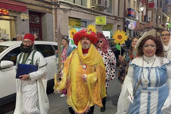 Although the departure was planned from the Gran Vía at the height of the Nuestra Señora del Carmen school, the small parade began from the Hispanoamérica neighborhood where a group of people recovered a traditional act of the town of Sax launched in the mid-1920s, related to the Moors and Christians festivities and which had not been held for more than two decades.