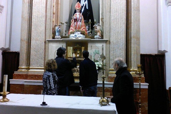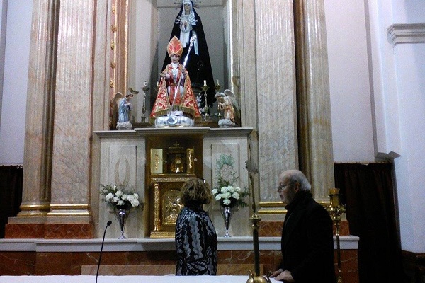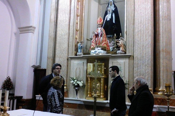 Nos trasladamos después a Santa Catalina la Parroquia arciprestal, ésta si que es grande y majestuosa. Yo me fui a decir la misa en la capilla de la comunión y se quedaron con Diego Requena que les dijo alguna cosa de la parroquia. Una vez finalizada la misa, tuvimos un recorrido por dicha iglesia, donde Juan Domenech les explicó todo, También nos acompañó Pedro Ortuño, vieron el retablo mayor, las capillas laterales del Dulce Nombre de Jesús, de la Virgen del Rosario, y demás Santos y entramos a la Capilla de la comunión que es donde tenemos el mejor Tesoro que puede tener Caudete: las Sagradas Formas incorruptas desde unos días antes al comienzo de la Guerra Civil y que se conservan intactas. Les explicó todo el proceso y concluimos nuestra visita en la Plaza del ayuntamiento o plaza de la Iglesia.