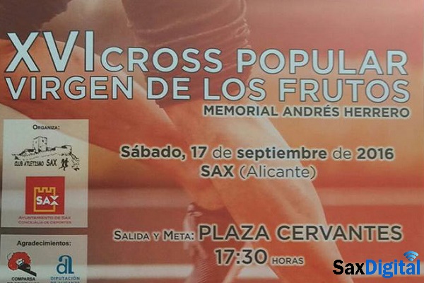 Patrocinado por la Concejalía de Deportes del Ayuntamiento de Sax y organizado por el Club Atletismo de Sax se celebra el próximo sábado 17 de septiembre a partir de las 17:30 horas y, coincidiendo con las fiestas que el municipio de Sax celebra en honor a la Virgen de los Frutos, la décimo sexta edición del Cross Popular Memorial “Andrés Herrero” con salida y meta en Plaza Cervantes.