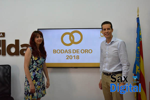 El alcalde, Rubén Alfaro, y la concejala de Servicios Sociales, Alba García, presentaron la campaña“Bodas de Oro 2018”, una iniciativa municipal que por primera vez se organiza en Elda y que dirigida a todas aquellas parejas que celebran sus 50 años juntos a lo largo del año 2018 y que actualmente estén empadronadas en Elda, con independencia del lugar en el que contrajeron matrimonio.