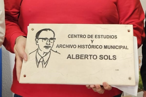 Otra de las novedades que consideramos de interés manifestar es la creación de una placa de mármol con un retrato grabado del profesor Sols en la propia piedra, para ser colocada en la fachada de la Casa Museo, con la siguiente inscripción: “Centro de Estudios y Archivo Histórico Municipal Alberto Sols”, habiéndose tenido en cuenta un espacio determinado para colocar un QR (Información específica telemática).