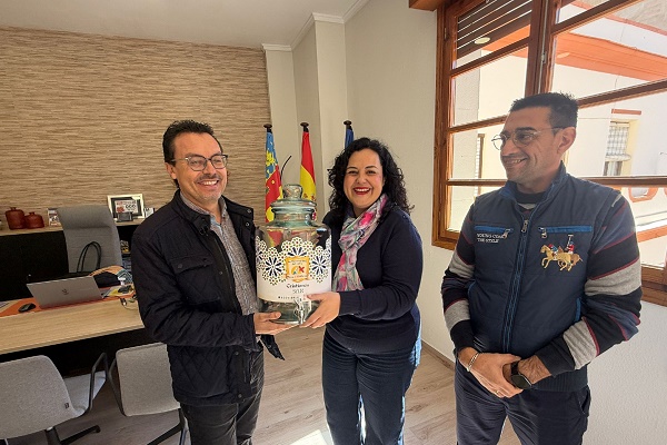 La comparsa de Cristianos fue la ganadora del sorteo del dispensador de bebidas fabricado en vidrio y personalizado con la imagen de campaña. El presidente de la entidad festera Vicente Aliaga Gil, recibía este pasado miércoles 1 de abril de manos de la primera edil Laura Estevan Antolín y el concejal de Limpieza Viaria y Recogida de Residuos,Ángel Guzmán Sánchez el premio del concurso y que le acredita como la Comparsa que en las pasadas fiestas de moros y cristianos de San Blas en febrero, fue la que más recicló, acumulando en los lugares indicados el vidrio de las botellas empleadas en la celebración de todos los actos en su sede social.