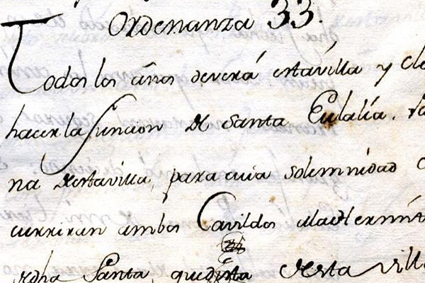 Por ejemplo, las cuentas de propios de 1647 citan el pago de treinta reales al licenciado Joseph Torreblanca “por la limosna del sermón que predicó el día de Santa Olalla deste año, patrona desta Villa”.
