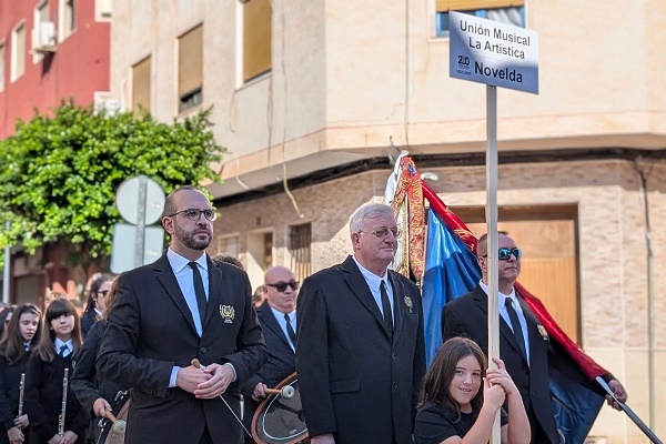 La Sociedad Unión Musical y Artística de Sax y la Sociedad Instructiva Musical Sones de Sax, aportaron al acto del desfile, más de un centenar de músicos, dirigidos por Manuel Mondéjar Criado y Sergio Vicedo Reig, respectivamente. Así mismo los directores sajeños, Juan Pedro Bernabé Poveda y Cristian Ripoll Juan, dirigían a sus respectivas bandas de música donde son titulares, la Unión Musical La Artística de Novelda y la Unión Musical Hondón de los Frailes.