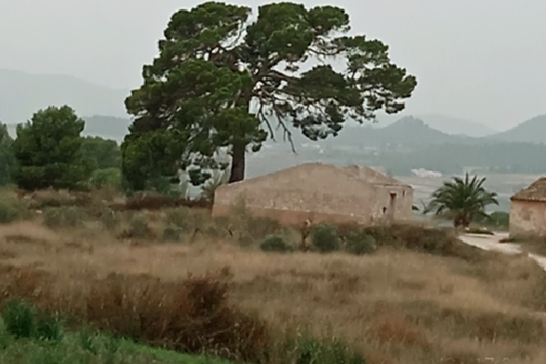 El pino Horcajo, por ejemplo, nos queda bastante cerca de Sax, crece a unos dos kilómetros del pueblo y se puede llegar hasta él fácilmente por medio de un camino importante y que hoy en día aparece asfaltado. El pino Horcajo se encuentra hoy en día detrás de una tapia, dentro de una propiedad particular, pero yo lo he conocido en campo abierto, sobre una pequeña mancha de monte compuesta por matas de espino y de romero que quedaba al lado del camino Hondo, que es el camino asfaltado que lleva a la finca de La Torre. Este árbol singular de nuestro término se caracteriza por presentar un tronco alto y desnudo de ramas, completamente limpio, algo así como una larga y poderosa columna vegetal, hasta que más arriba, en lo que se puede considerar ya la copa, presenta como una nube densa de hojas de pino dispuesta sobre un armazón rico en ramas. Hace unos años, cuando este pino se alzaba a campo abierto, se podía ver mejor desde el camino Hondo; pero, claro, el auge de la construcción ha echado importantes y fuertes raíces en nuestra forma de vida por todo nuestro término rural, y en consecuencia, hemos ido parcelando y edificando muchas zonas del campo que trabajaron nuestros mayores. Y es por eso que, en la actualidad, el pino Horcajo ha quedado integrado en el gran jardín particular que queda detrás de la tapia; un jardín amplio y con numerosos elementos ornamentales: con sus escalinatas, con sus rosales y todo tipo de plantas exóticas, incluidas las palmeras. No sé si también dispone de alguna fuente este recinto porque, desde el camino, no se puede apreciar toda la extensión del espacio vallado.